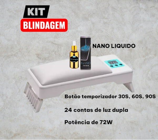 Combine o Nano Líquido de Blindagem com a Máquina UV 72W, e tenha o kit perfeito pra começar a lucrar com blindagens profissionais, seja em casa, no salão ou em atendimentos externos.